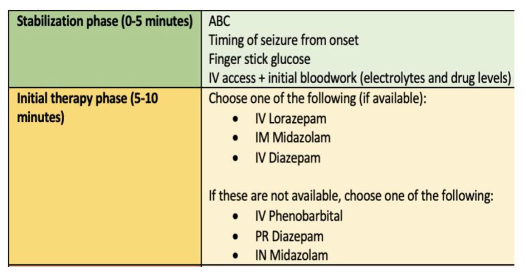 A 24-year-old woman is brought to the ED confused. She is incoherent when she speaks. Per EMS report, she had a generalized tonic-clonic seizure 15 minutes ago. Witnesses saw her pull her car to the side of the road and began to shake inside her car. While you are evaluating her, she begins to have another generalized tonic-clonic seizure that lasts for 2 minutes. She slowly regains consciousness and is confused but no longer actively seizing.