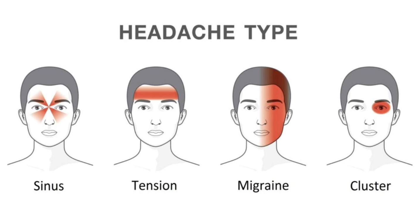 • Bilateral, “band-like” pain around the forehead and sides of head