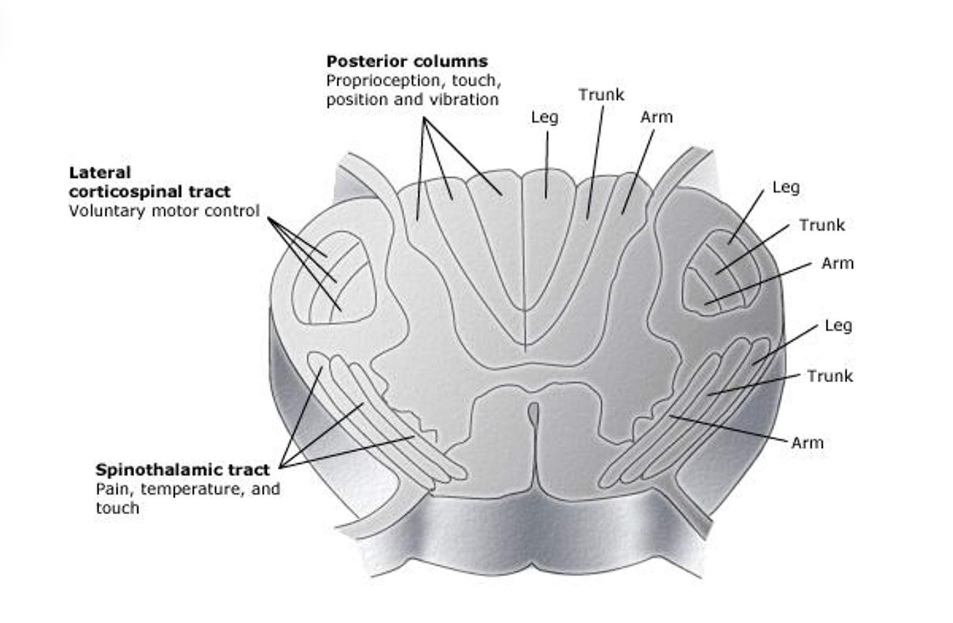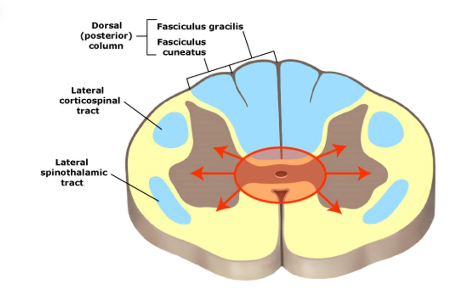 - If he had extension to the posterior columns, he would develop loss of position and vibratory sensation in the feet.