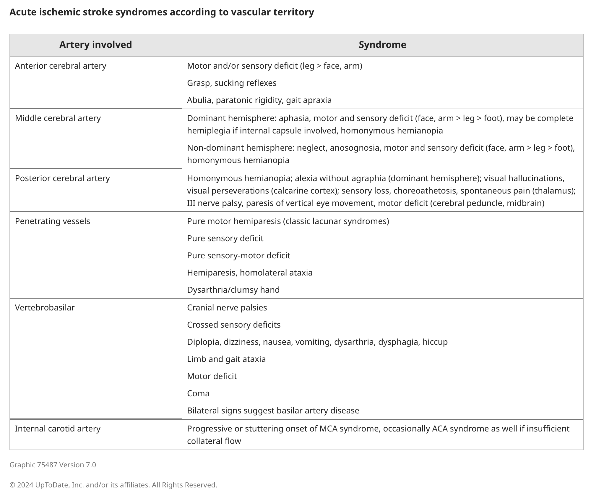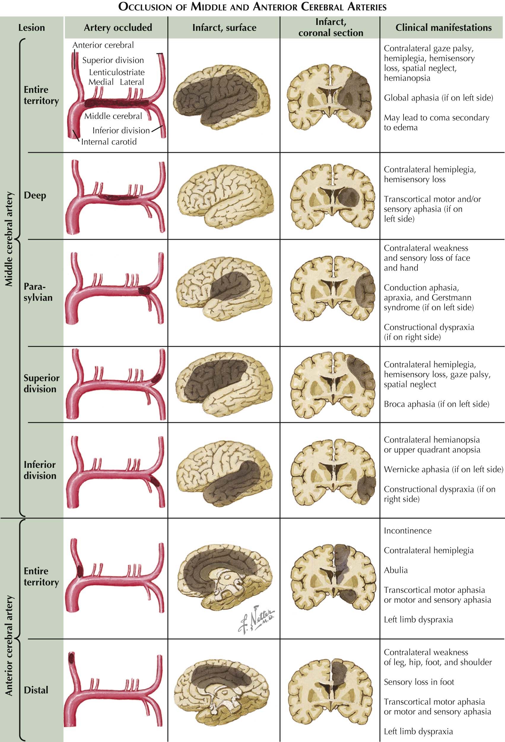 Overview of common stroke findings, by location: