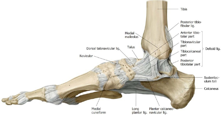 Deltoid ligament (medial ligament of ankle)—compound structure consisting of four ligaments.