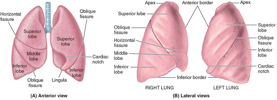 Oblique fissure in both lungs; horizontal fissure in right lung only