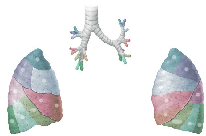 Third-order bronchi are called segmental bronchi. Each lung has roughly 10 of these air tubes. Segmental bronchi aerate specific regions of the lung known as bronchopulmonary segments (Figure 33).