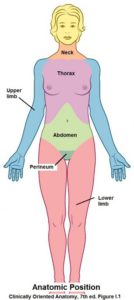Gross anatomy can be described using a systems or a regional approach. In FMS 501, we use a regional approach to learn the organs and structures within certain body regions (see Figure 1.1). In other courses, we will study entire organ systems, such as the respiratory and gastrointestinal tracts.