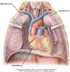 The thoracic cavity contains three serous sacs: two associated with the lungs and one with the heart. (See Figures 1.5 and 1.6.)