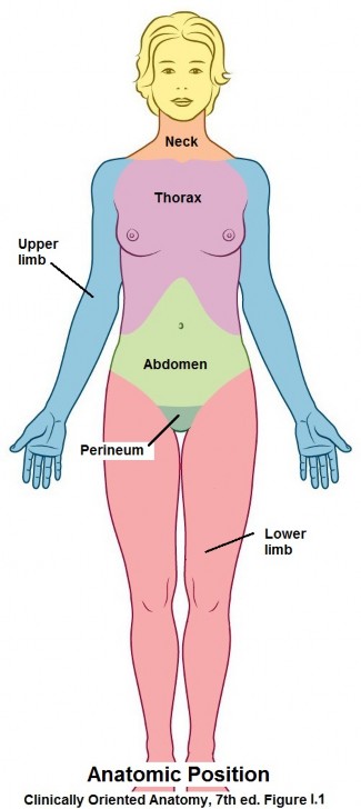 Gross anatomy can be described using a systems or a regional approach. In FMS 501, we use a regional approach to learn the organs and structures within certain body regions (see Figure 1.1). In other courses, we will study entire organ systems, such as the respiratory and gastrointestinal tracts.