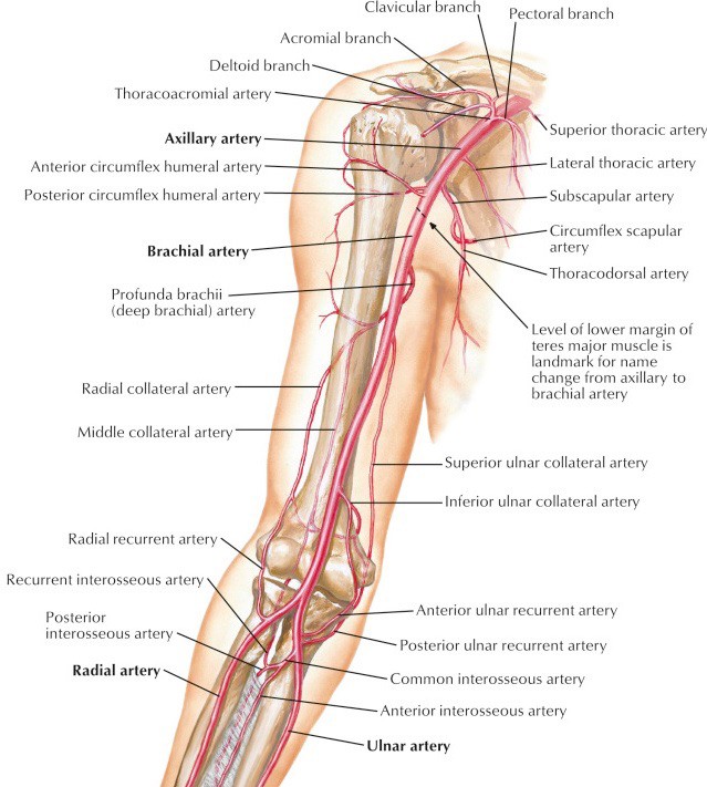 Figure 10.6 Vessels of the arm. DRAKE, GRAY’S ANATOMY FOR STUDENTS, 4TH ED., FIG. 7.67.