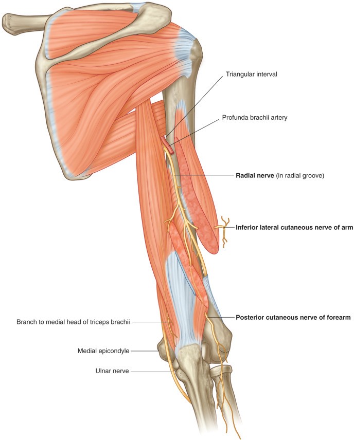 Figure 10.8 Radial nerve in the posterior arm. DRAKE, GRAY’ S ANATOMY FOR STUDENTS, 4TH ED., FIG. 7.69.