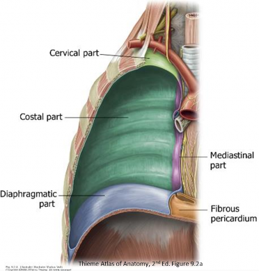 - Cervical pleura (a.k.a. cupula) projects above rib 1, where it forms a dome above the apex of the lung.