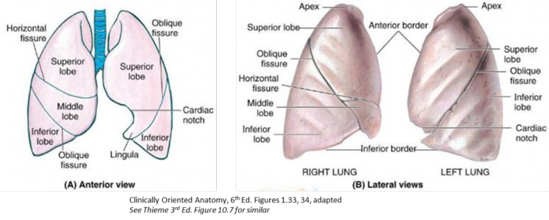 - Root of the lung: The collection of structures that enter/exit the lung: main bronchus, pulmonary artery, superior and inferior pulmonary veins, autonomic nerves, and lymphatic vessels.