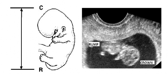 Crown-rump length is most commonly used. Ultrasound crown-rump length measurements are useful for estimating the age of fetuses. (See Figure 2.1.)