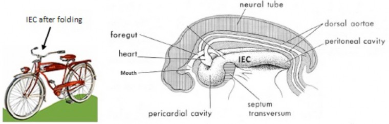 - The pleural sacs and serous pericardium develop from the portion of the IEC cranial to the diaphragm (the “bicycle handlebars”). This will be discussed further in the chapter on Lungs.