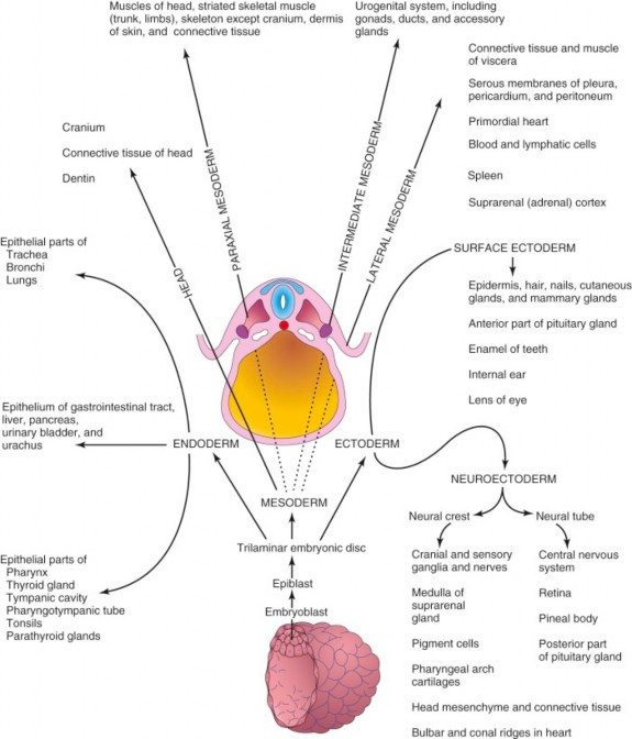 Fates of ectoderm, mesoderm, and endoderm