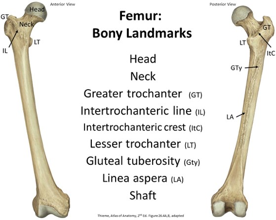 Figure 24.3 Osteology of the femur.
