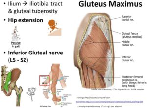Did you know we don’t actually sit on our Gmax? When you flex your hip, it slides superiorly so you are really sitting on skin, fat, and a bursa covering the ischial tuberosity. Ha! So everyone has a ‘bony butt’!!