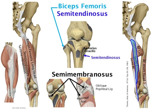 Muscles: Semitendinosus, Semimembranosus, and Biceps Femoris (short head and long head)