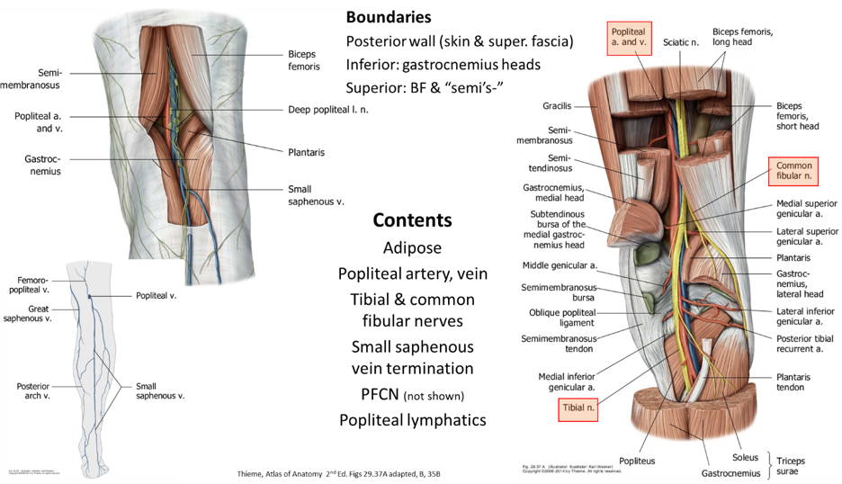 Medial border: Semimembranosus and semitendinosus muscles and medial head of gastrocnemius