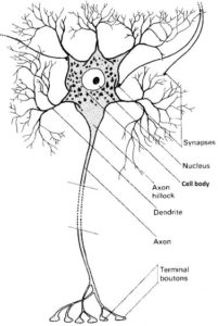 Neurons possess a cell body (contains the nucleus and cytoplasm) and a variable number of processes that project away from the cell body. Processes are of two types: dendrites and axons. By definition, the axon transmits impulses away from the cell body.