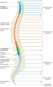 Associated with the spinal cord are 31 pairs of spinal nerves and 31 pairs of dorsal root ganglia.