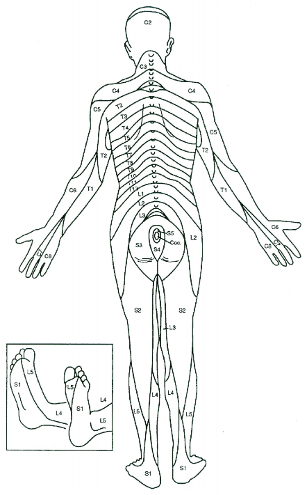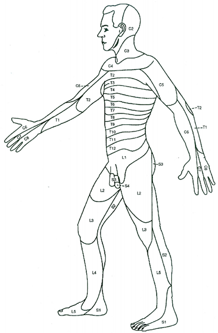 Two classical dermatome maps were developed by Foerster (1933) and by Keegan and Garrett (1948). The Foerster maps are preferred by neurologists. We will use the Foerster maps in our anatomy course—they are printed for your perusal in Figure 3.17 and Figure 3.18.