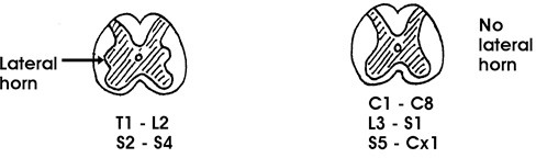 This column appears in cross section as the lateral horn of gray. See Figure 4.2.