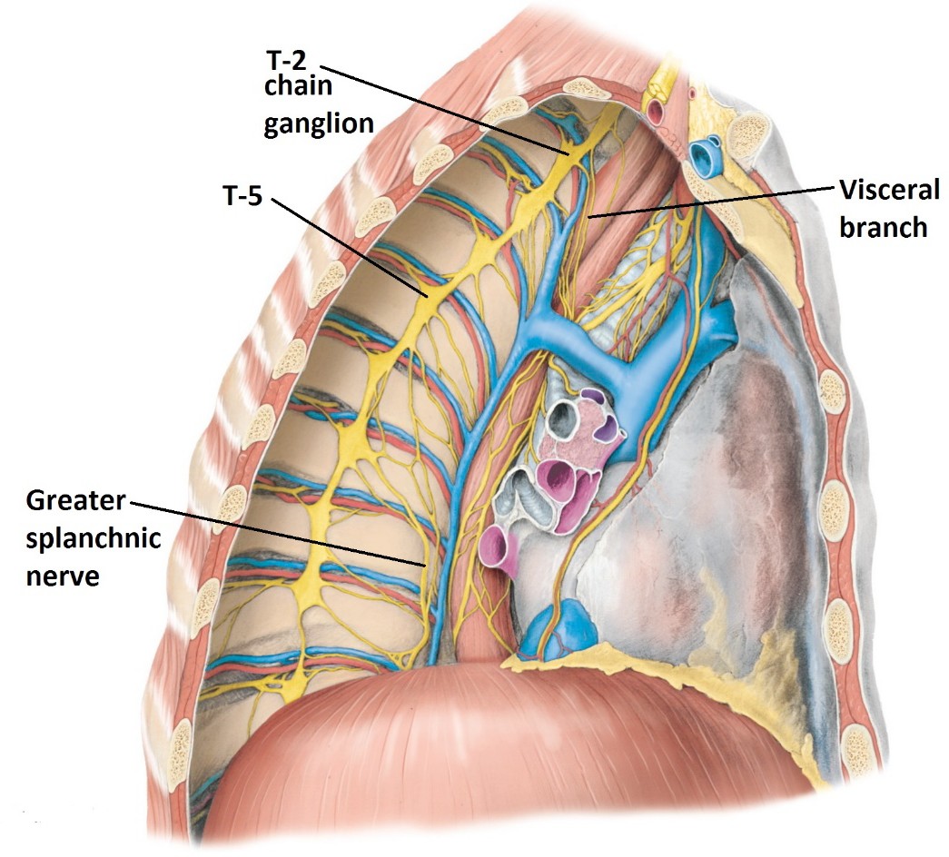 Sympathetic chain ganglia: Visceral branches and splanchnic nerves