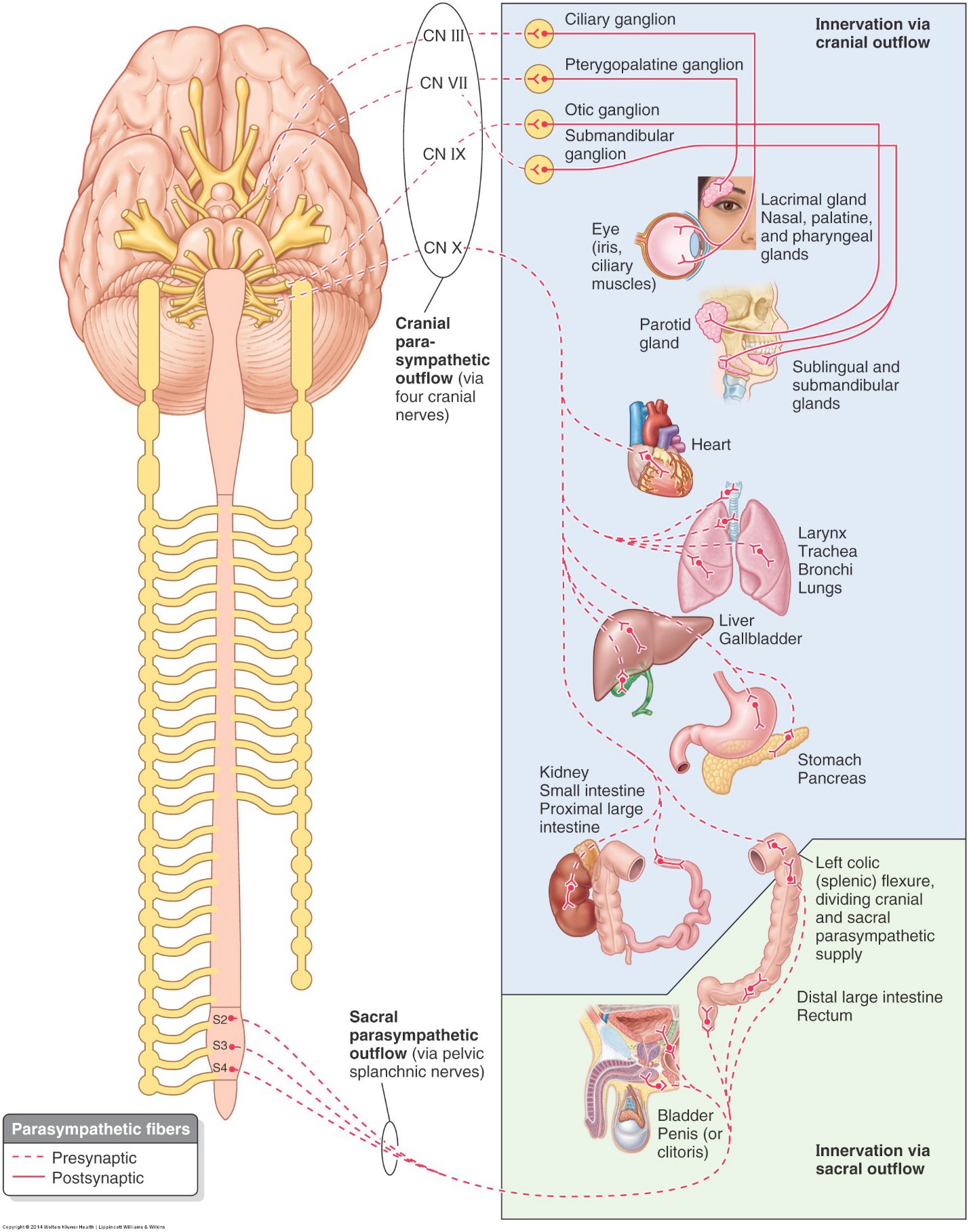 Figure 4.8 Summary diagram of parasympathetic division of ANS. MOORE ET AL., CLINICALLY ORIENTED ANATOMY, FIGURE I.48.