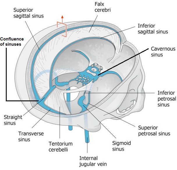 Often you can see indentations of the sinuses on the skull itself (e.g., “groove for sigmoid sinus”).