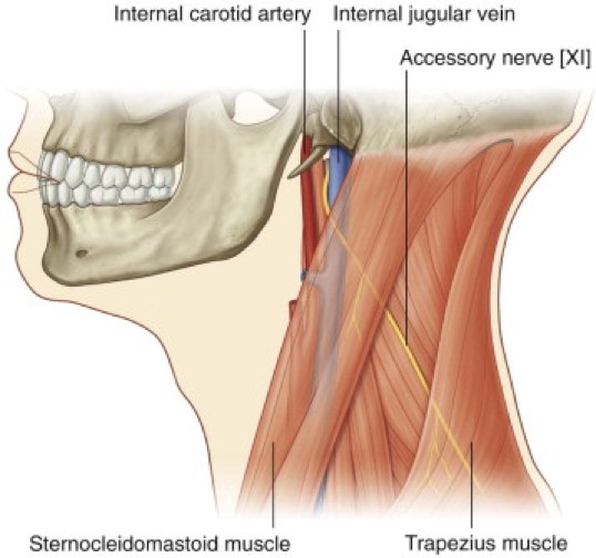 Figure 13. CN XI in posterior triangle. GRAY’S ANATOMY FOR STUDENTS, 3RD ED., FIG. 8.170.