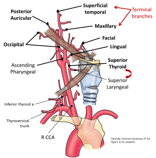 Figure 20. Branches of external carotid artery in the neck. GRAY’S ANATOMY FOR STUDENTS, 3RD ED., FIG. 8.167.