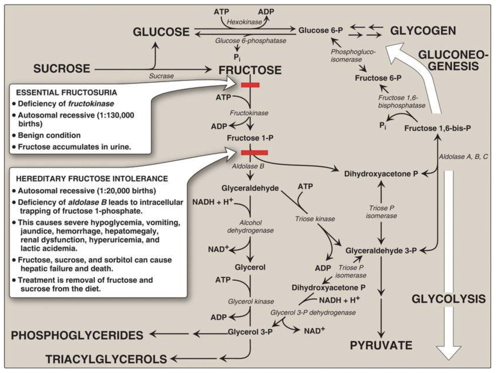- Fructokinase (essential fructosuria)
