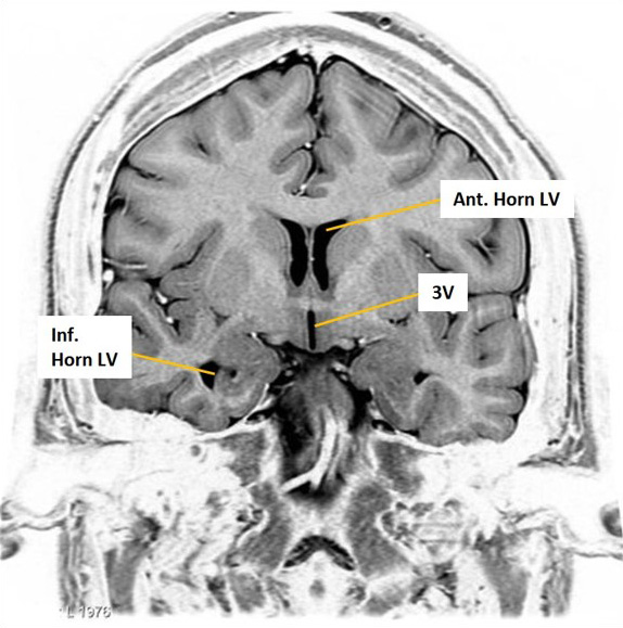- Portions of the lateral ventricle include: the anterior horn, body, atrium, posterior horn, and inferior horn