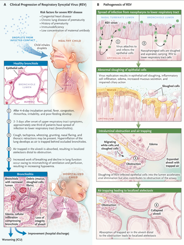 - Nicholson E, Schroeder A, Piedra PA. Bronchiolitis in infants and children: Clinical features and diagnosis. UpToDate. 2024. Last updated March 10, 2026. Accessed April 2026.